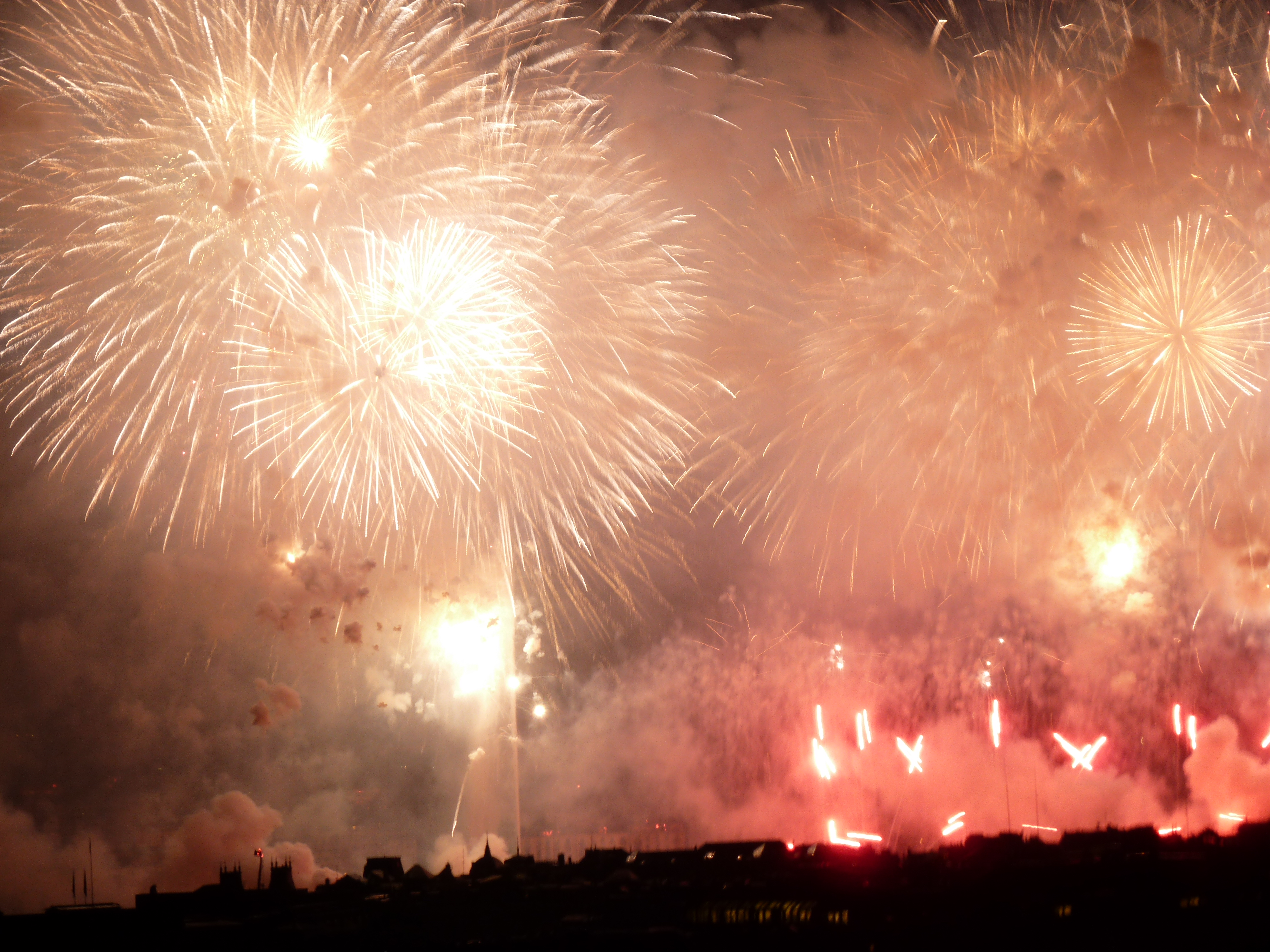Since this was the last weekend of Fêtes de Genève, a large fireworks display was planned for Saturday evening as the month-long celebration’s big finale. Sandeep and I headed to an apartment in the center of town and rode the elevator to the 9th floor for a balcony view of the lake and mountains beyond. Adam and Kevin, the hosts of the party, were attentive and kind providing both intelligent conversation and bottles of wine depending on current need. The fireworks began around 9:30pm and lasted for almost an hour with a variety of musical interludes. Prior to that evening, I had always watched fireworks from a picnic blanket or lawn chair. Never before had I witnessed such a display from a top floor view. From the balcony, I felt myself floating above the city alongside the burning embers exploding into the night. There was just one more day left in Geneve and a perfect ending to my first destination on this backpacking expedition.