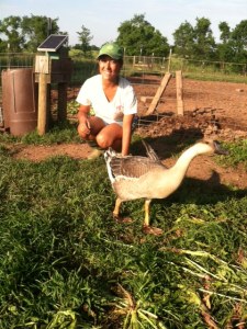 I took a picture at the farm before leaving–a newly formed WWOOFer tradition. The sheep and goats were camera-shy, skirting just outside the lens of the camera. Rosie, the goose, was the only one willing to pose with me after nibbling at my fingers and pants. I was glad to have some physical documentation of my time on the farm. Ei-ei-o.