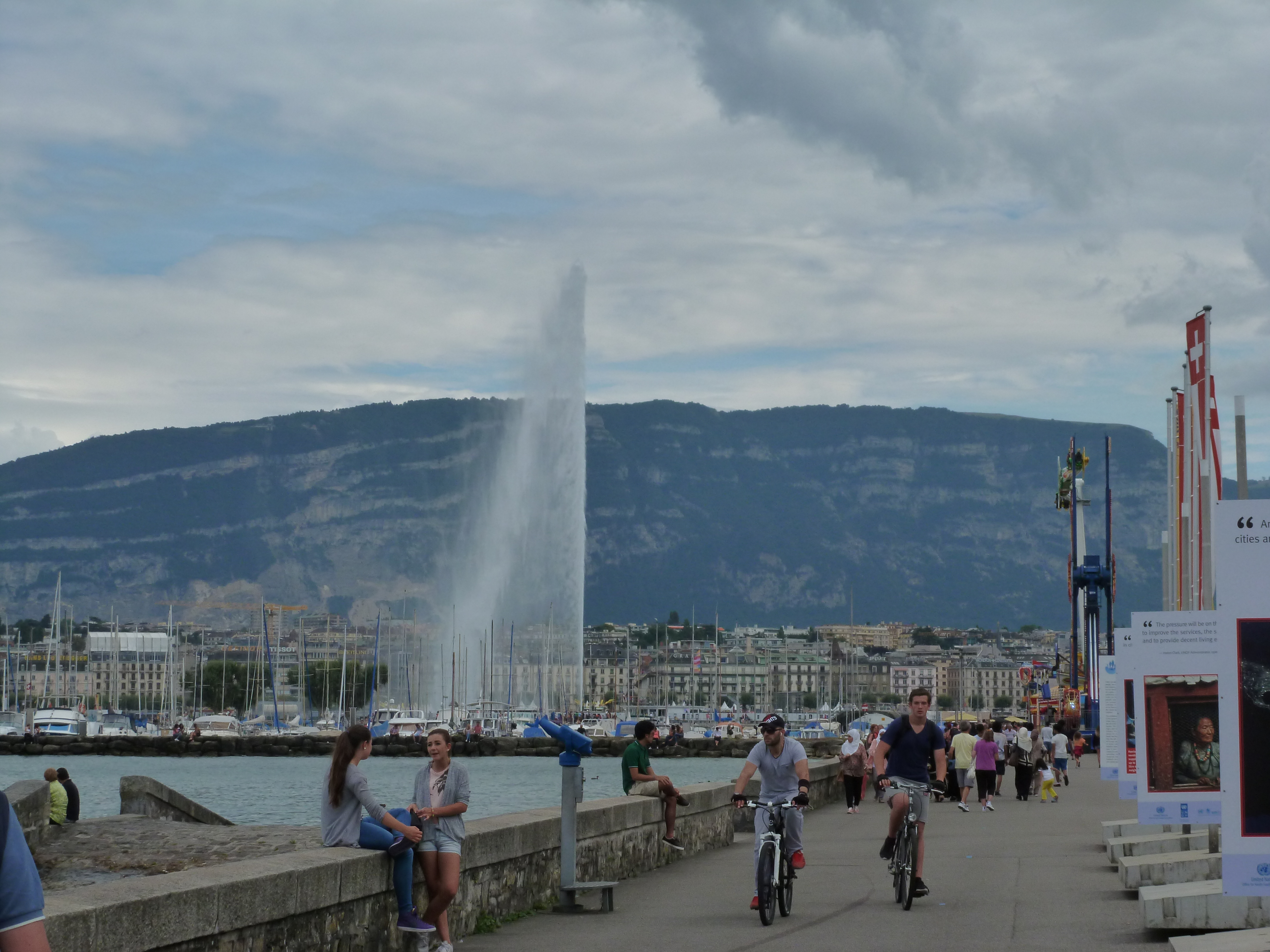 Since this was the last weekend of Fêtes de Genève, a large fireworks display was planned for Saturday evening as the month-long celebration’s big finale. Sandeep and I headed to an apartment in the center of town and rode the elevator to the 9th floor for a balcony view of the lake and mountains beyond. Adam and Kevin, the hosts of the party, were attentive and kind providing both intelligent conversation and bottles of wine depending on current need. The fireworks began around 9:30pm and lasted for almost an hour with a variety of musical interludes. Prior to that evening, I had always watched fireworks from a picnic blanket or lawn chair. Never before had I witnessed such a display from a top floor view. From the balcony, I felt myself floating above the city alongside the burning embers exploding into the night. There was just one more day left in Geneve and a perfect ending to my first destination on this backpacking expedition.