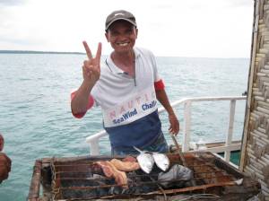 The School of the SEAs has a large fishing boat that we took out on Wednesday, my first full day. We had a wonderful meal with grilled fish, kinilaw (raw fish in vinegar and onions), pork, seaweed and rice. I ate with my hands along with the rest of the crew, feeling each grain of rice and small fish bone in my palm. My hand formed a personal connection with the food before it reached my tongue, an intimate exercise different from the use of a knife and fork. We spend the rest of the time snorkeling around the boat before returning to shore.