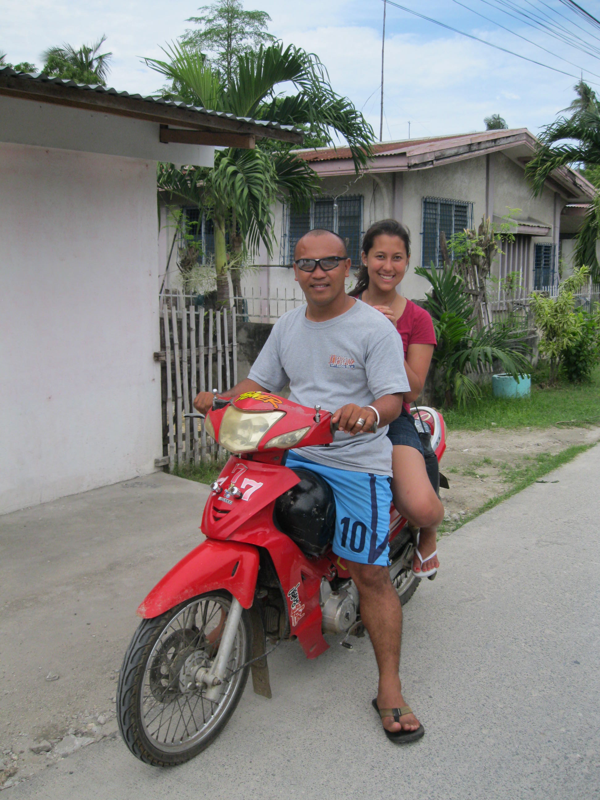 After lunch we had to make one more stop before returning home but a tricycle was nowhere to be found. Tricycles here are motorcycles with a giant wooden carrier attached capable of holding up to 6 or 8 people. The heat of the sun was unrelenting and we paused to sweat when a motorcycle stopped next to us. Carlie and the driver exchanged pleasantries while I smiled and nodded as if I understood the conversation. Before I knew it, I was holding on to Carlie’s waist as the three of us flew down the road on the Angelo’s bike. Apparently, riding on the back of someone else’s motorcycle is a common form of public transportation, especially the provinces. (Don’t worry Mom, I’m writing this post with all limbs attached).
